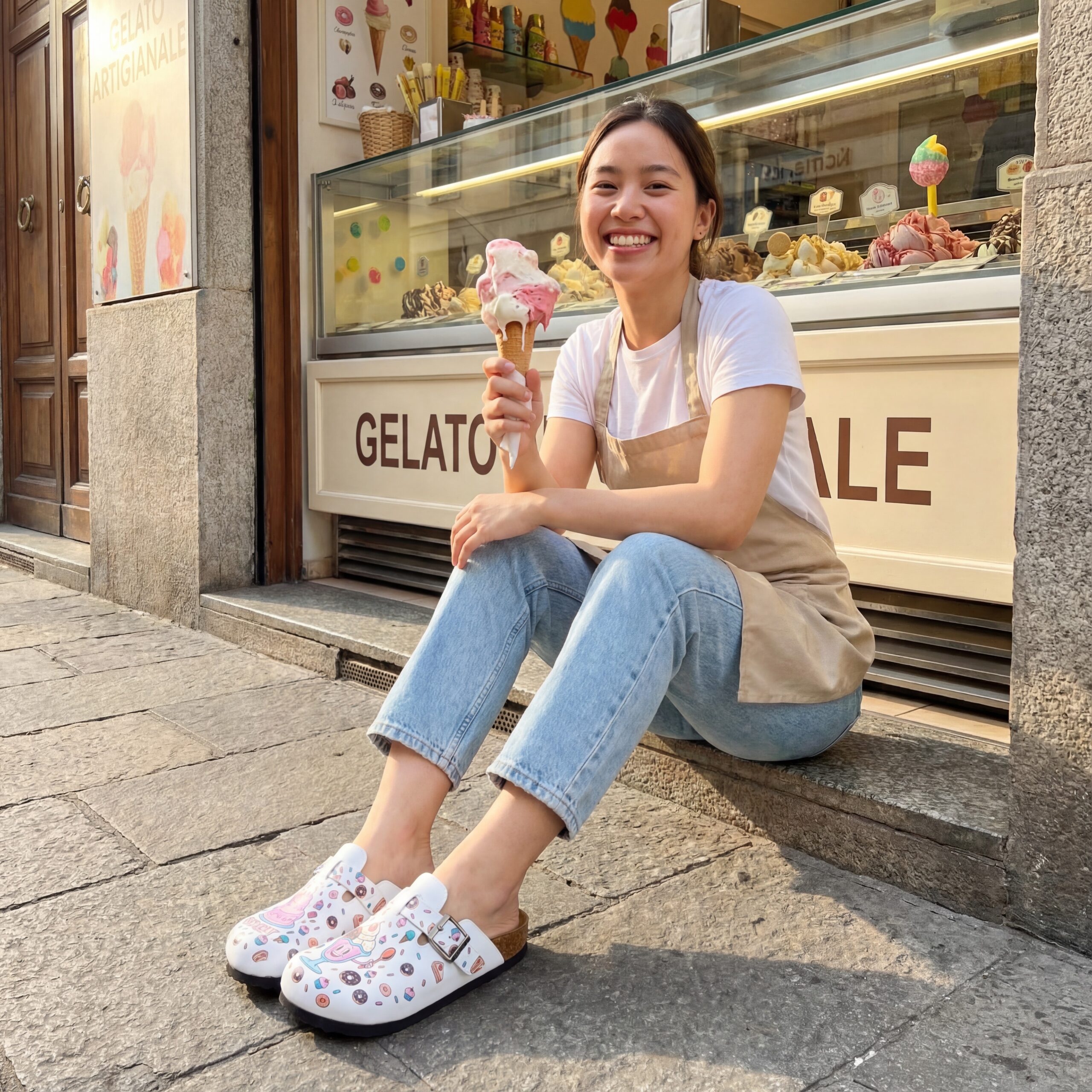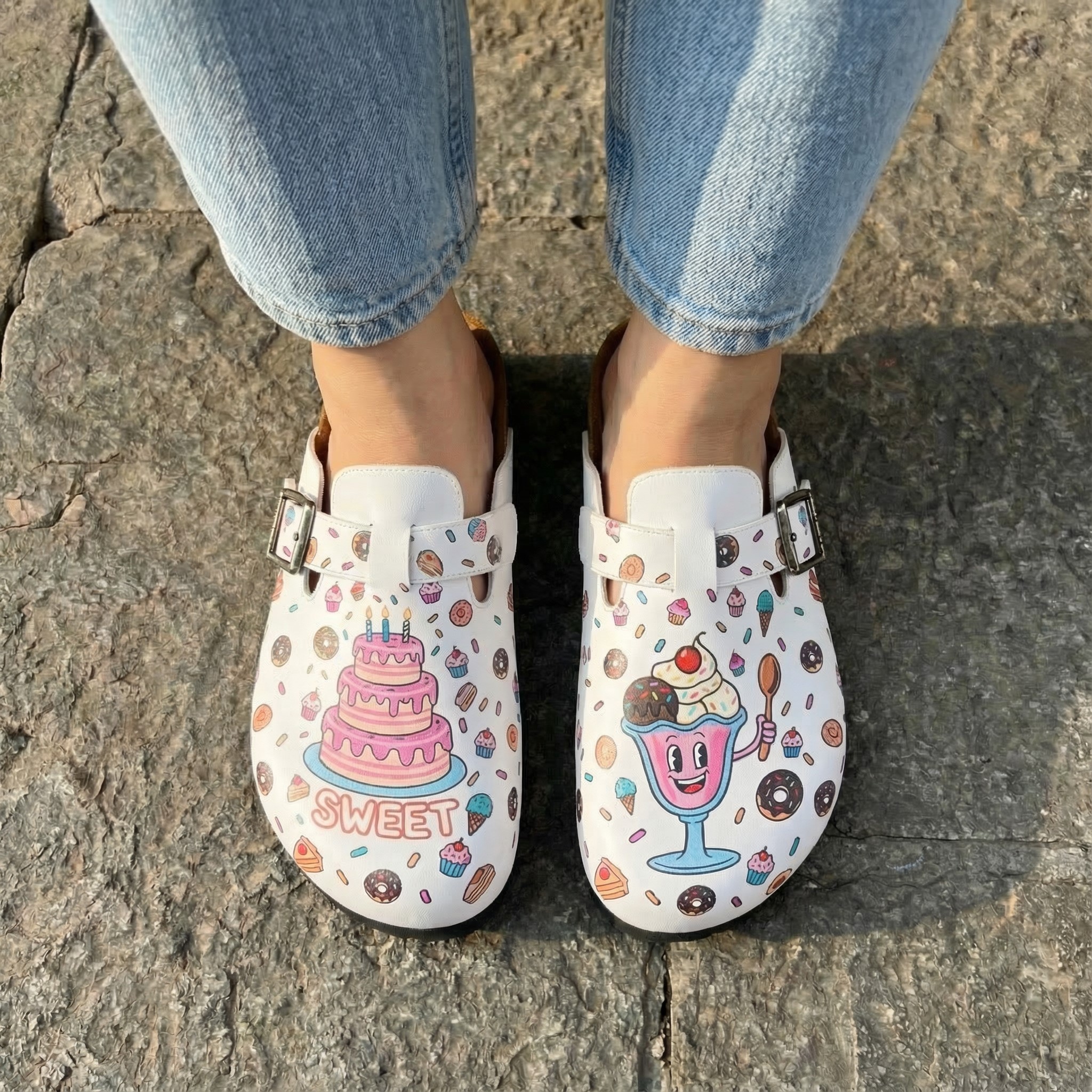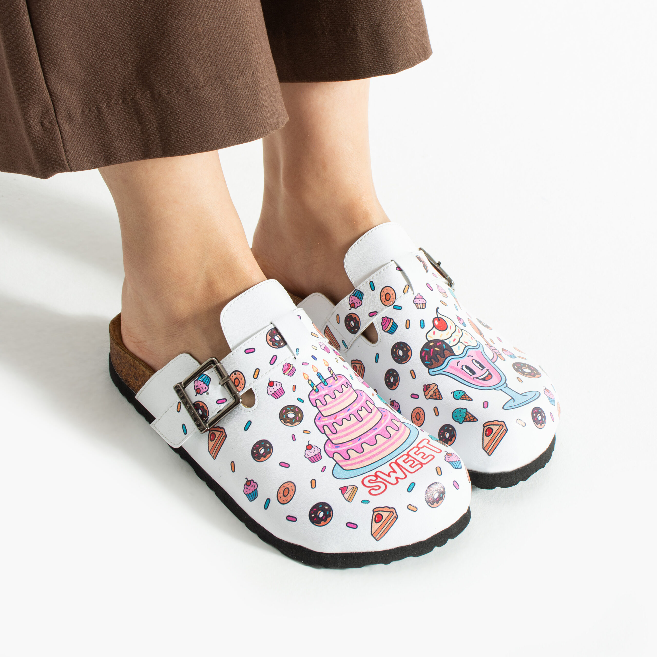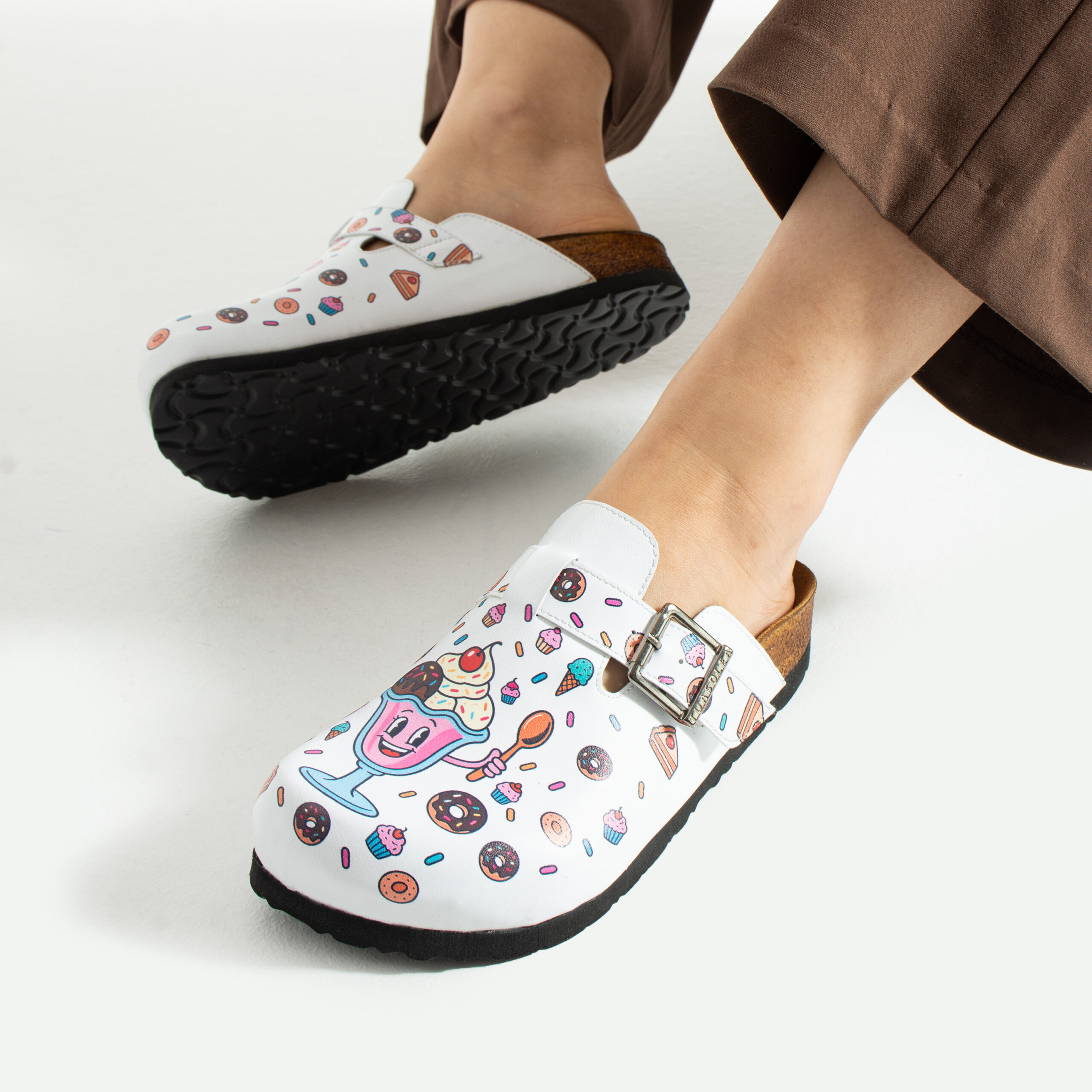 Изработени са от висококачествена еко кожа, устойчива на напукване и деформация, с дълготраен UV печат, който запазва цветовете си за дълго. Ортопедичната подметка осигурява стабилна опора и равномерно разпределение на натоварването, а стелката от микрофибър е приятна на допир, не запарва и не позволява приплъзване. Формата на сабото не притиска пръстите, металната катарама е устойчива на корозия и позволява лесно напасване към нормален и леко по-широк крак, а материалите не задържат прах, петна и неприятни миризми.