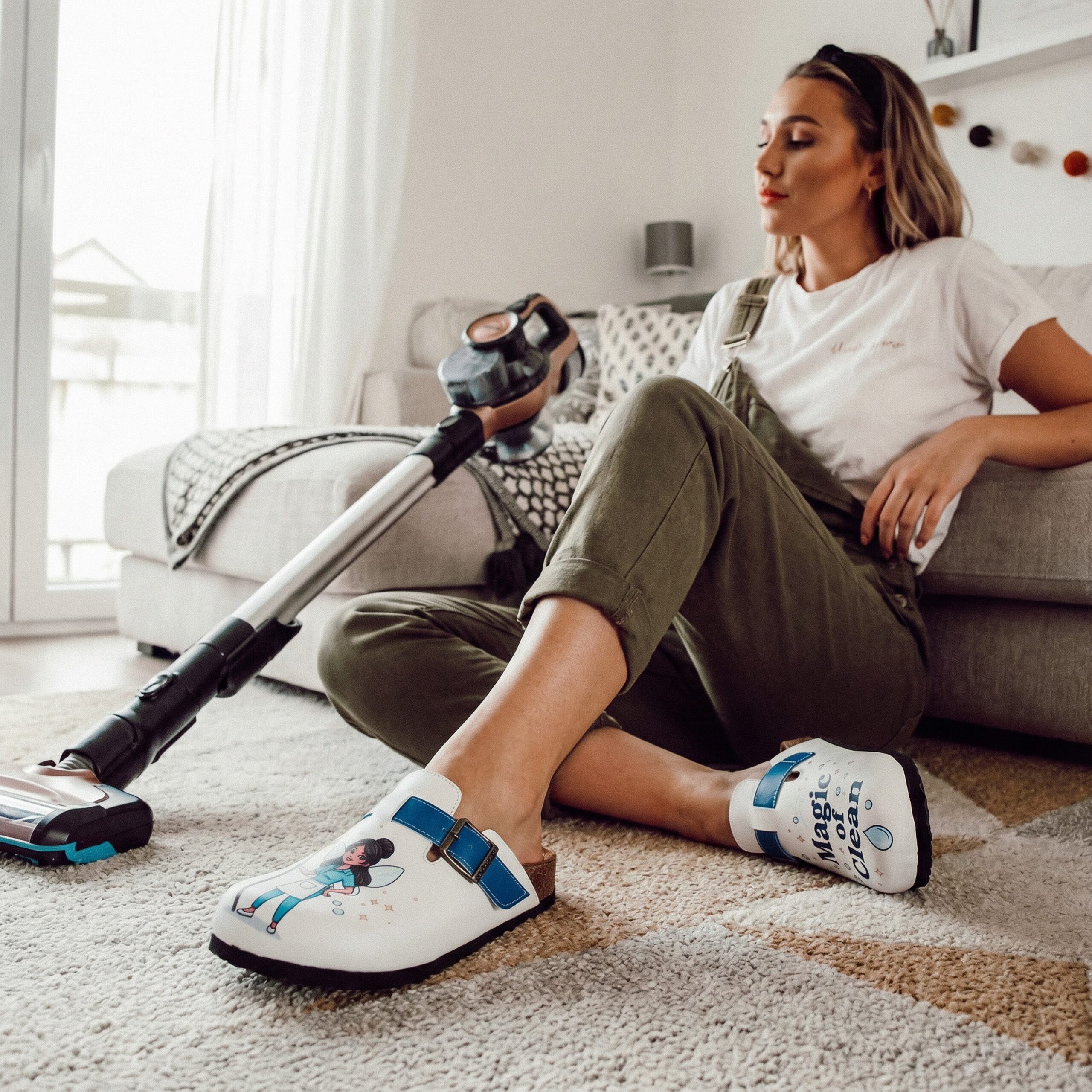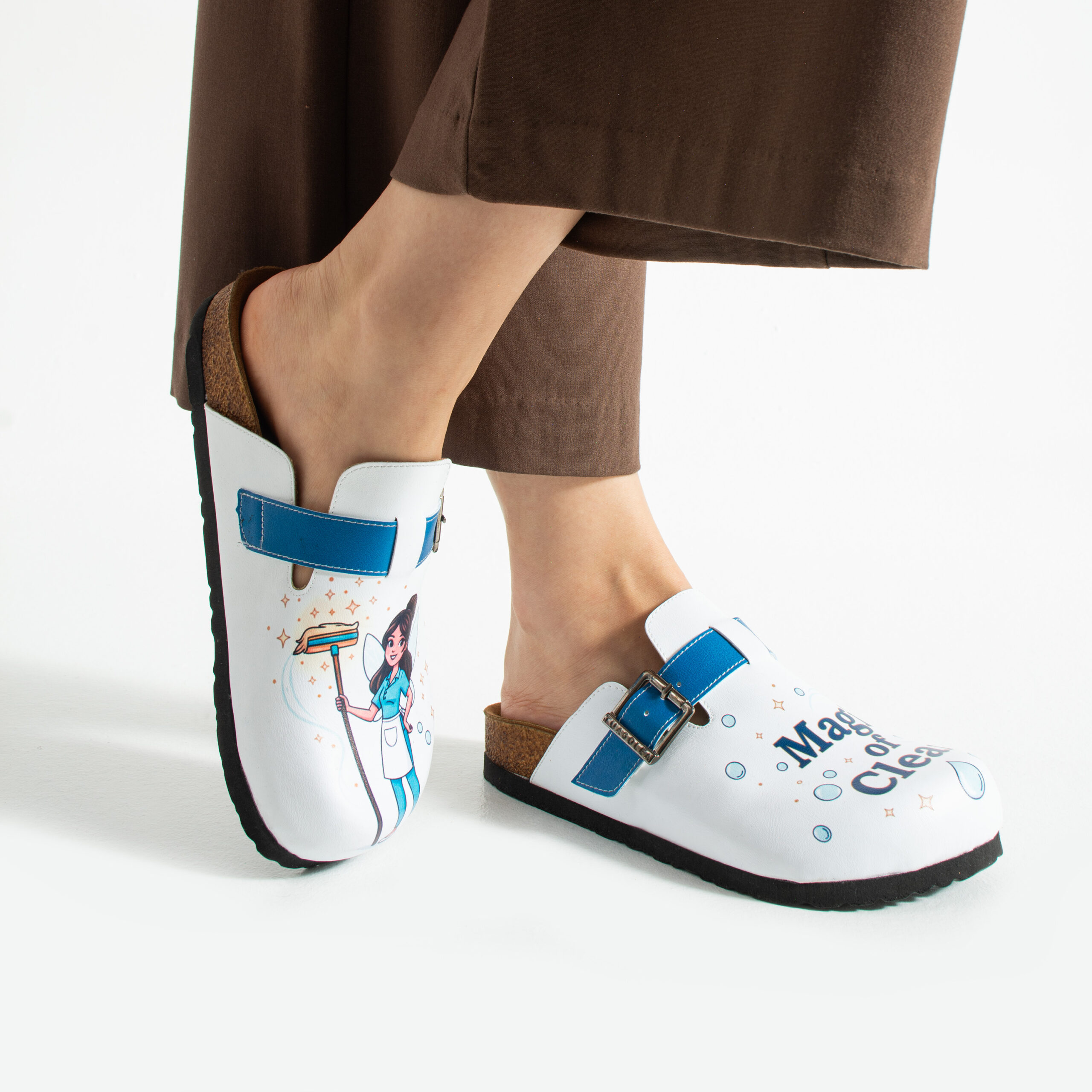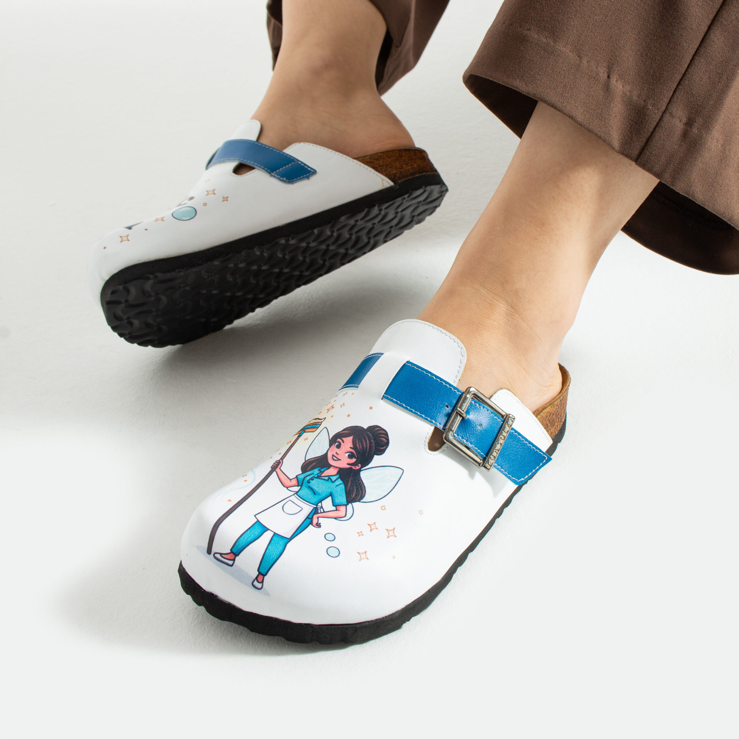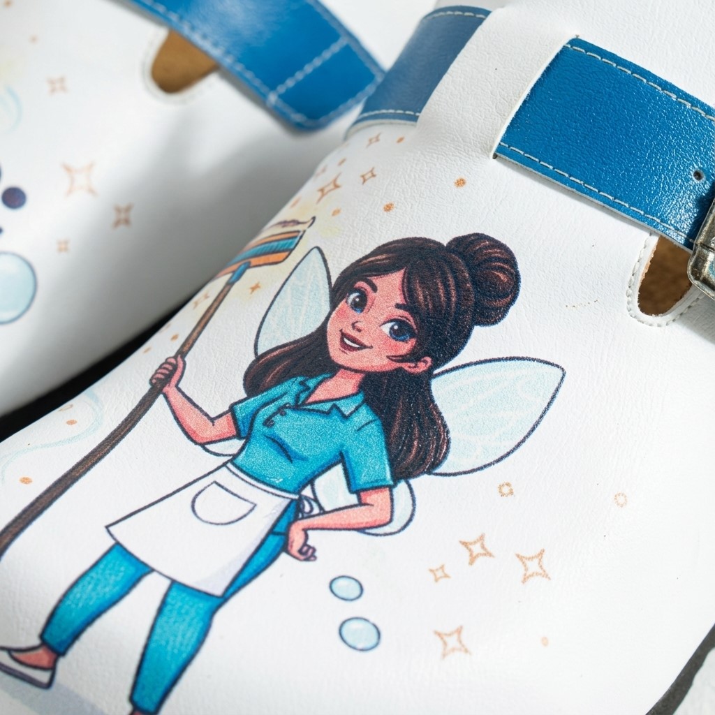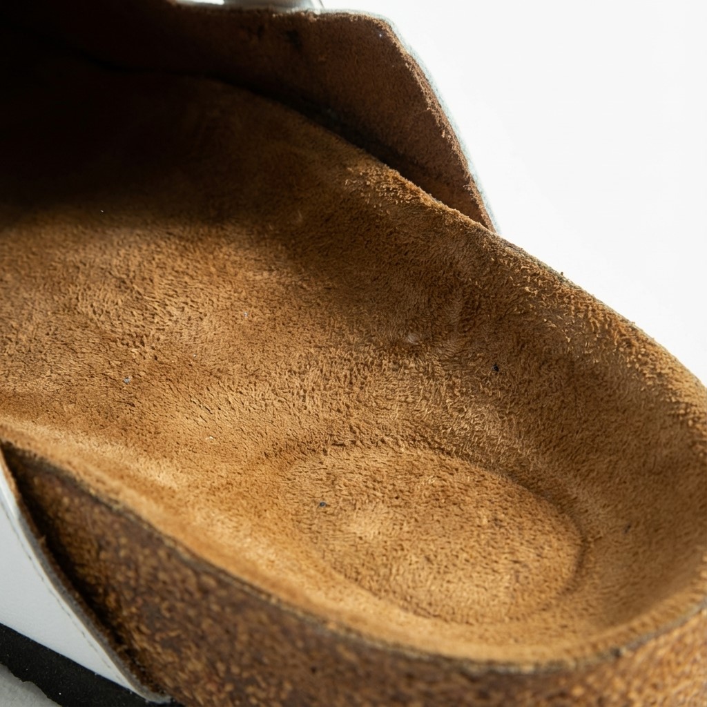 Чехлите са изработени от висококачествена еко кожа, устойчива на напукване и деформация, с дълготраен UV печат, който запазва цветовете си за дълго при редовна употреба. Ортопедичната подметка осигурява стабилна опора и равномерно разпределение на натоварването, а стелката от микрофибър е приятна на допир, не запарва и предотвратява приплъзване. Формата не притиска пръстите, металната катарама е устойчива на корозия и позволява лесно напасване към нормален и леко по-широк крак, а материалите не задържат прах, петна и неприятни миризми.